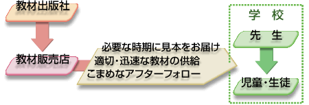 このシステムにより、図書教材は、安価に、また迅速正確に全国の学校に供給されているのです。